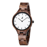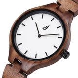 The Brighton is a light weight watch made of Walnut wood, accompanied by a white dial with black details.