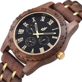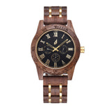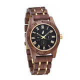 The Flinders features a classic SEIKO VD75 movement, a minimal black dial with golden details and stainless steel enforced strap links. Made from walnut wood and handcrafted to perfection.